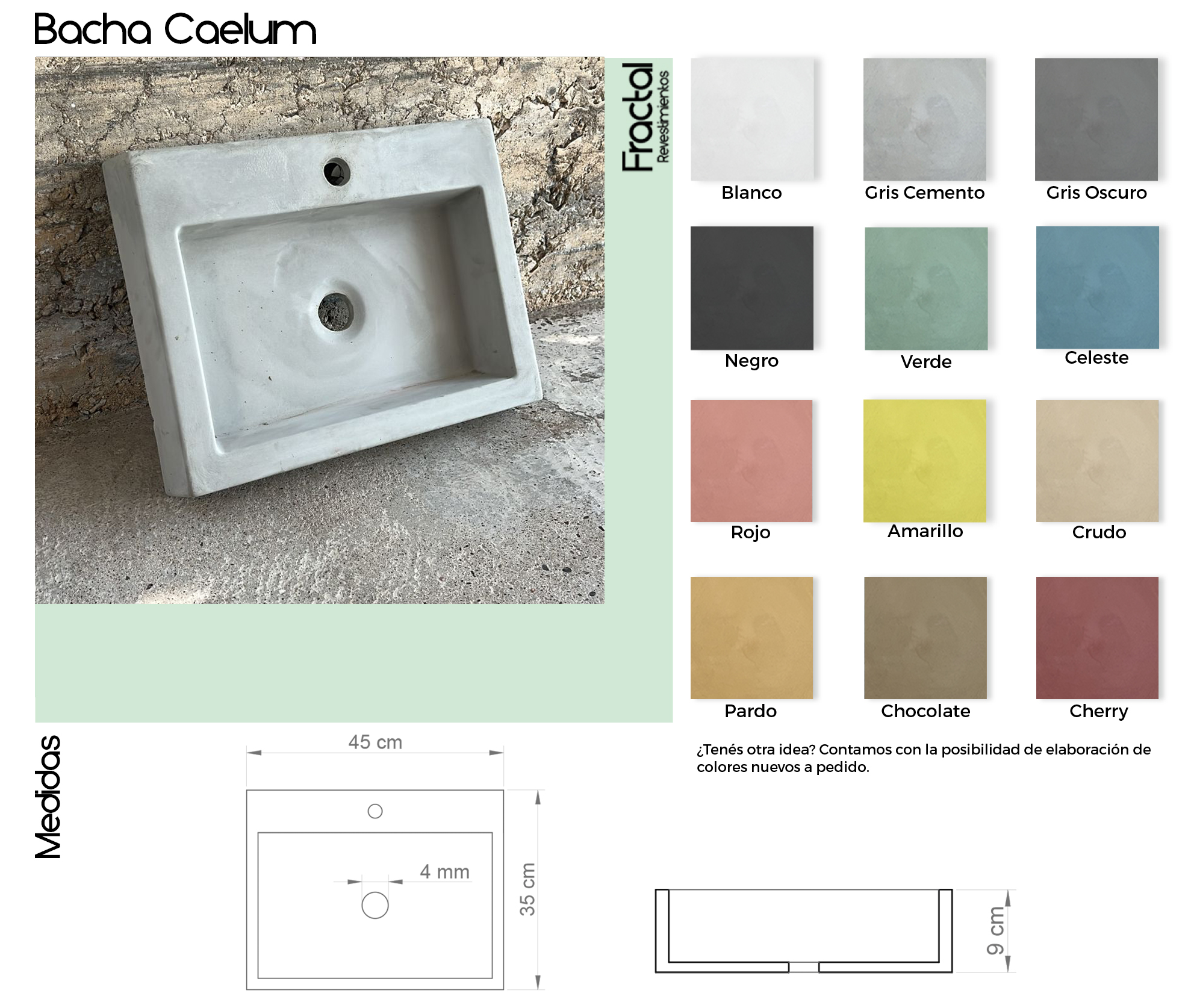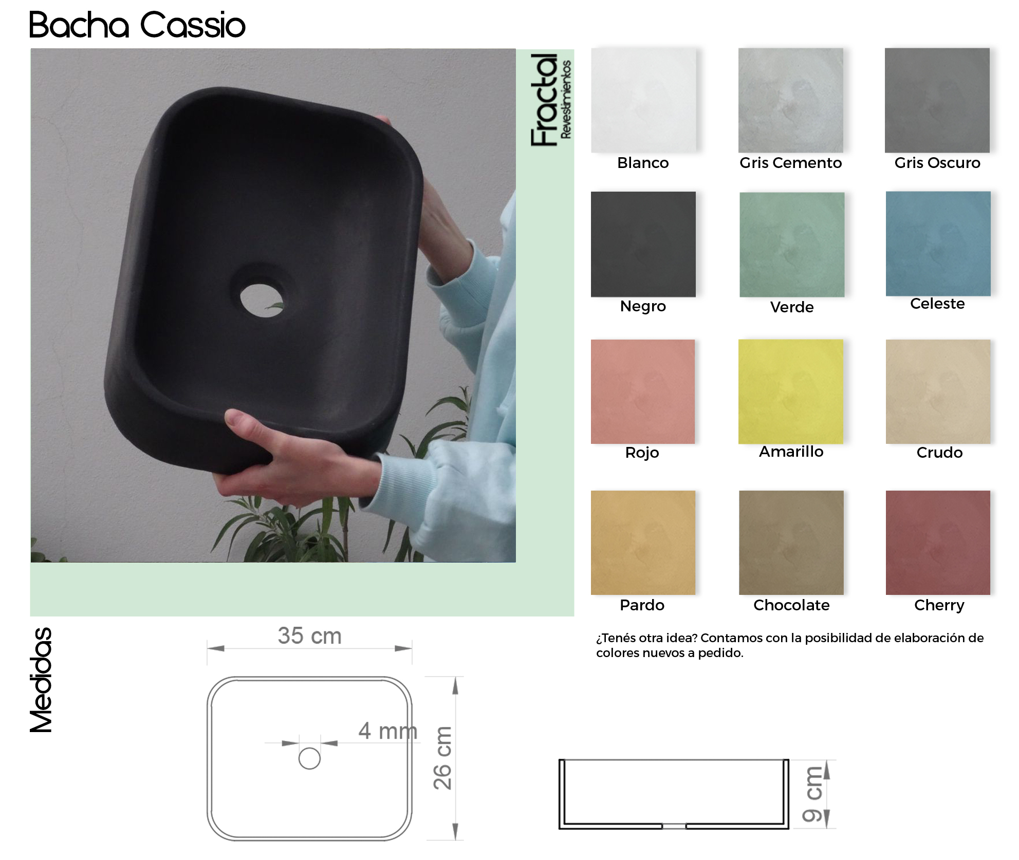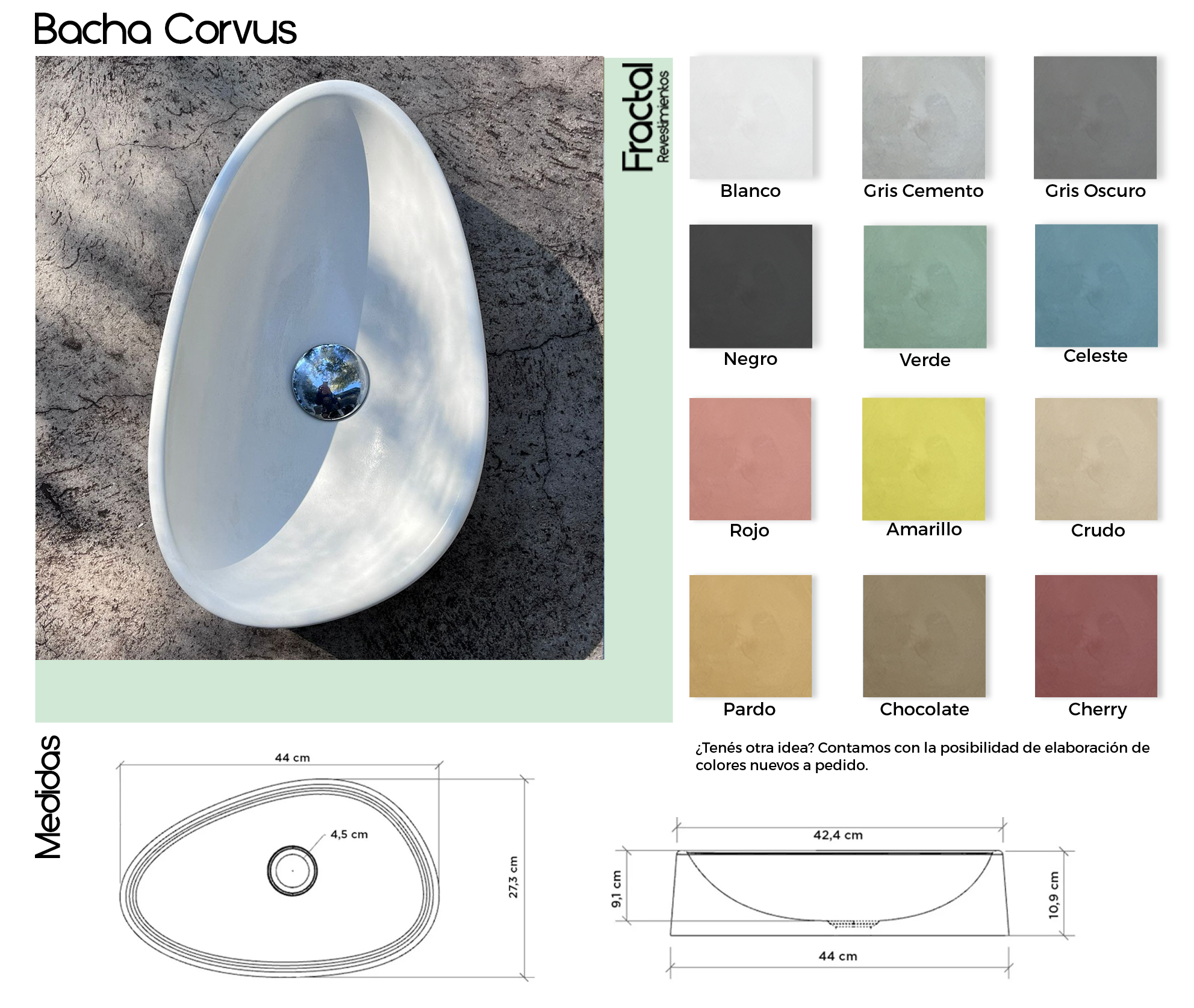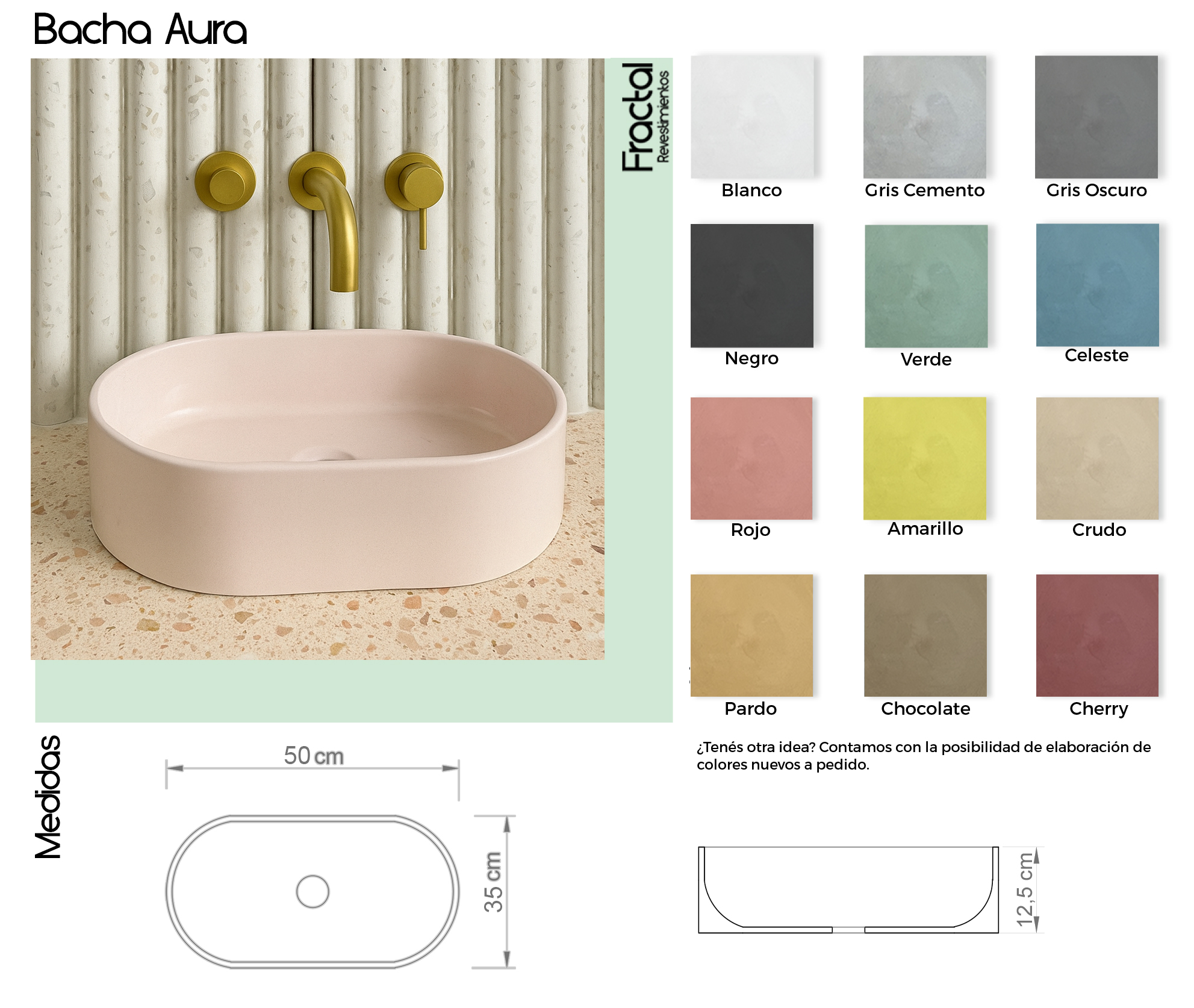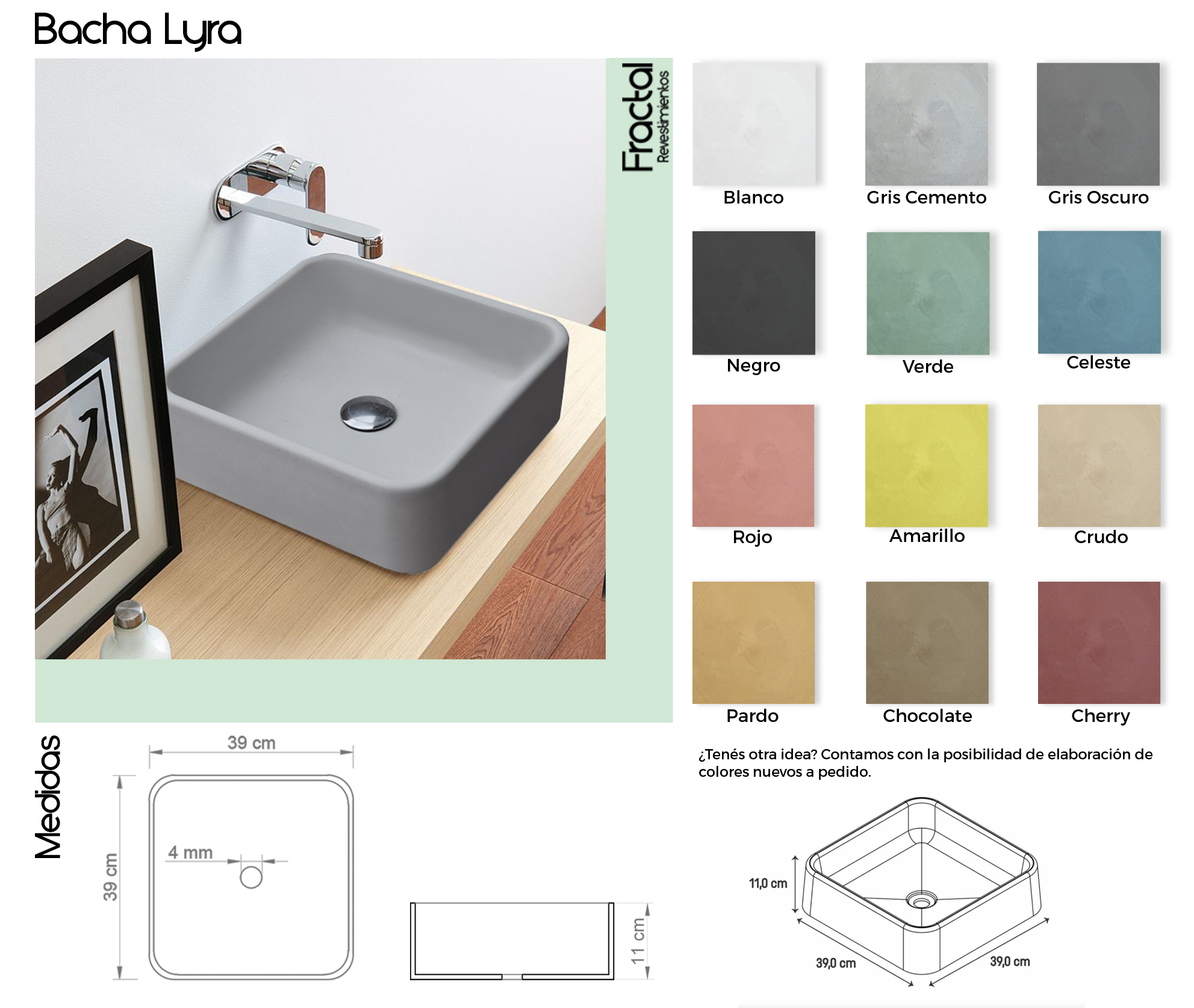 Las bachas de cemento Fractal fueron diseñadas combinando diseño, funcionalidad y durabilidad. Se fabrican de manera homogénea a partir de una única mezcla de dosaje, lo que garantiza una coloración uniforme, una textura auténtica y una alta resistencia al uso diario.